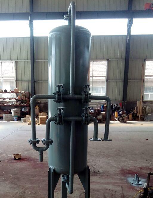 使用錳砂過濾器處理之后的井水經(jīng)自吸泵加壓后流進(jìn)曝氣裝置,主要的作用是使井水與空氣中的氧氣充分發(fā)生接觸反應(yīng)。利用氧化處理的方法將水中低價(jià)鐵離子與低價(jià)錳離子氧化成高價(jià)鐵離子和高價(jià)錳離子之后迅速沉淀的一個(gè)方法。經(jīng)過曝氧后的井水會(huì)到達(dá)沉淀池進(jìn)行沉淀,(主要起緩沖的作用,使水具有足夠的時(shí)間發(fā)生沉淀)沉淀后的過濾水經(jīng)過增壓泵加壓后進(jìn)入除鐵除錳系統(tǒng),它的主要作用是去除水中的泥沙,鐵銹,錳,紅蟲,藻類,金屬物質(zhì)以及各種懸浮物等固體物質(zhì),錳砂過濾器在正常的工作條件中操作壓力為0.3pa,過濾的速度平均為15m/hr。
