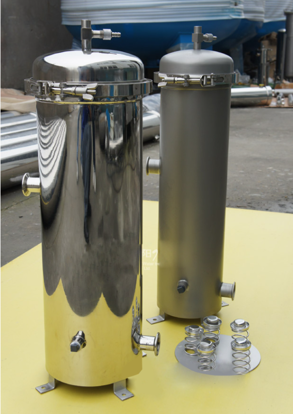 袋式過濾器操作方法比較簡(jiǎn)單,在使用時(shí),只需要將所需細(xì)度等級(jí)的濾袋放置在濾筒內(nèi),檢查O型密封圈密封性是否完好,之后旋緊濾筒蓋環(huán)形螺栓,設(shè)備即可投入工作。此時(shí)過濾機(jī)上壓力表微微上升,過濾器初始運(yùn)行壓力約0.05MPa左右,隨著使用時(shí)間延長(zhǎng),缸內(nèi)濾渣逐漸增多,當(dāng)壓力達(dá)到0.4MPa時(shí),應(yīng)停機(jī)打開筒蓋,檢查濾機(jī)袋留渣情況,可更換濾袋繼續(xù)使用(濾袋通過清洗一般可重復(fù)使用)。